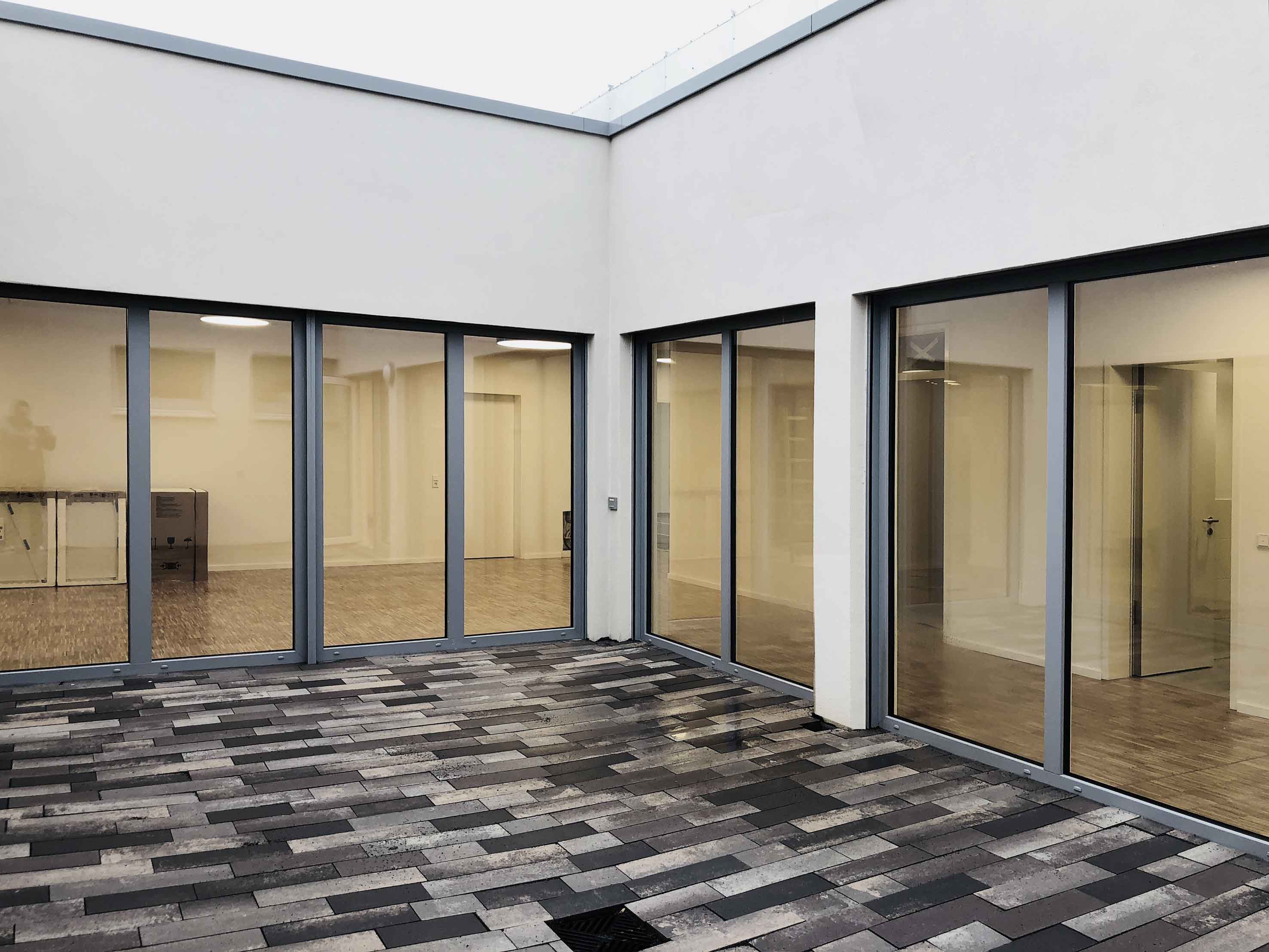 Der Kindergarten umfasst drei Gruppen. In der Regelgruppe werden 25 Kinder im Alter von drei bis sechs Jahren betreut. Werden Kinder mit Behinderung betreut, kann die Anzahl der Betreuungsplätze entsprechend reduziert werden. In der altersgemischten Gruppe werden ebenfalls 25 Kinder betreut. Hier ist allerdings schon eine Betreuung ab dem zweiten Lebensjahr möglich. Die ´ Nestgruppe bietet Platz für 12 Kinder im Alter von zwei bis drei Jahren. Damit trägt der Bauherr der großen Nachfrage in diesem Bereich Rechnung und erhöht das Platzangebot für Kleinkinder deutlich. Insgesamt finden bis zu 62 Kinder einen Betreuungsplatz. Direkt aus den drei Gruppenräumen gelangt man in die beiden Schlafräume, in denen Kinder mit Ganztagsbetreuung schlafen können. Der Mehrzweckraum wird durch eine mobile Trennwand vom Speiseraum getrennt, an den die Ausgabeküche angrenzt. Für Feste und gemeinsame Aktivitäten bietet sich hier ein optimaler Platz. Neben Personal-, Sanitär- und Reinigungsräumen findet man auch einen Differenzierungsraum, der eine intensivere Arbeit mit den Kindern ermöglicht. Durch einen kleinen Innenhof werden die Flurbereiche hell und offen wirken.