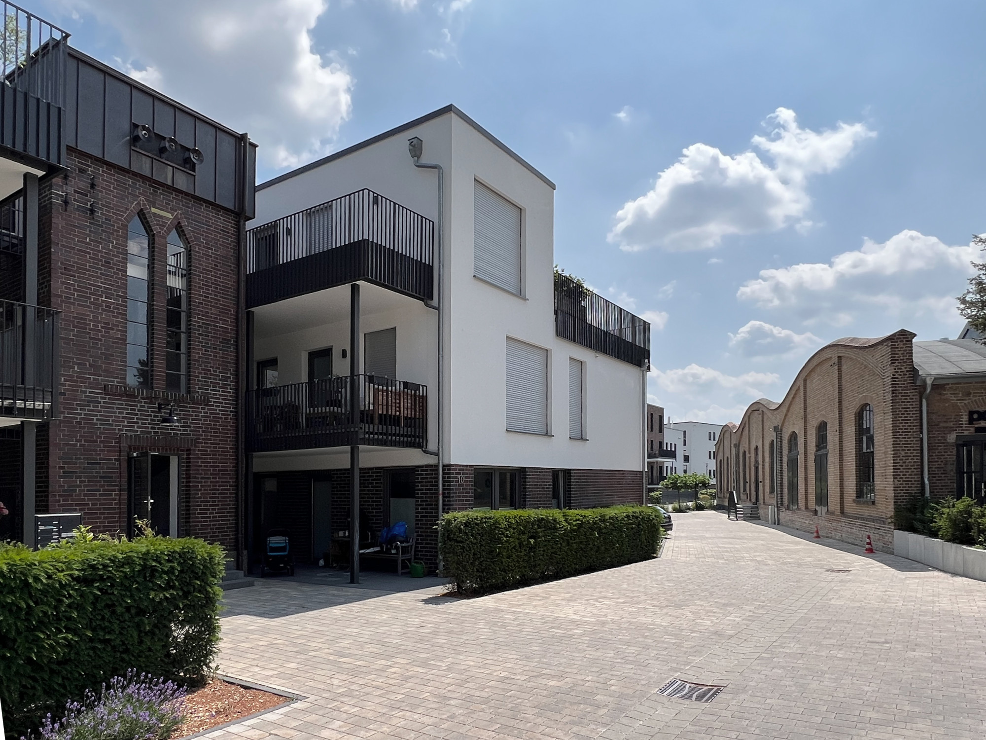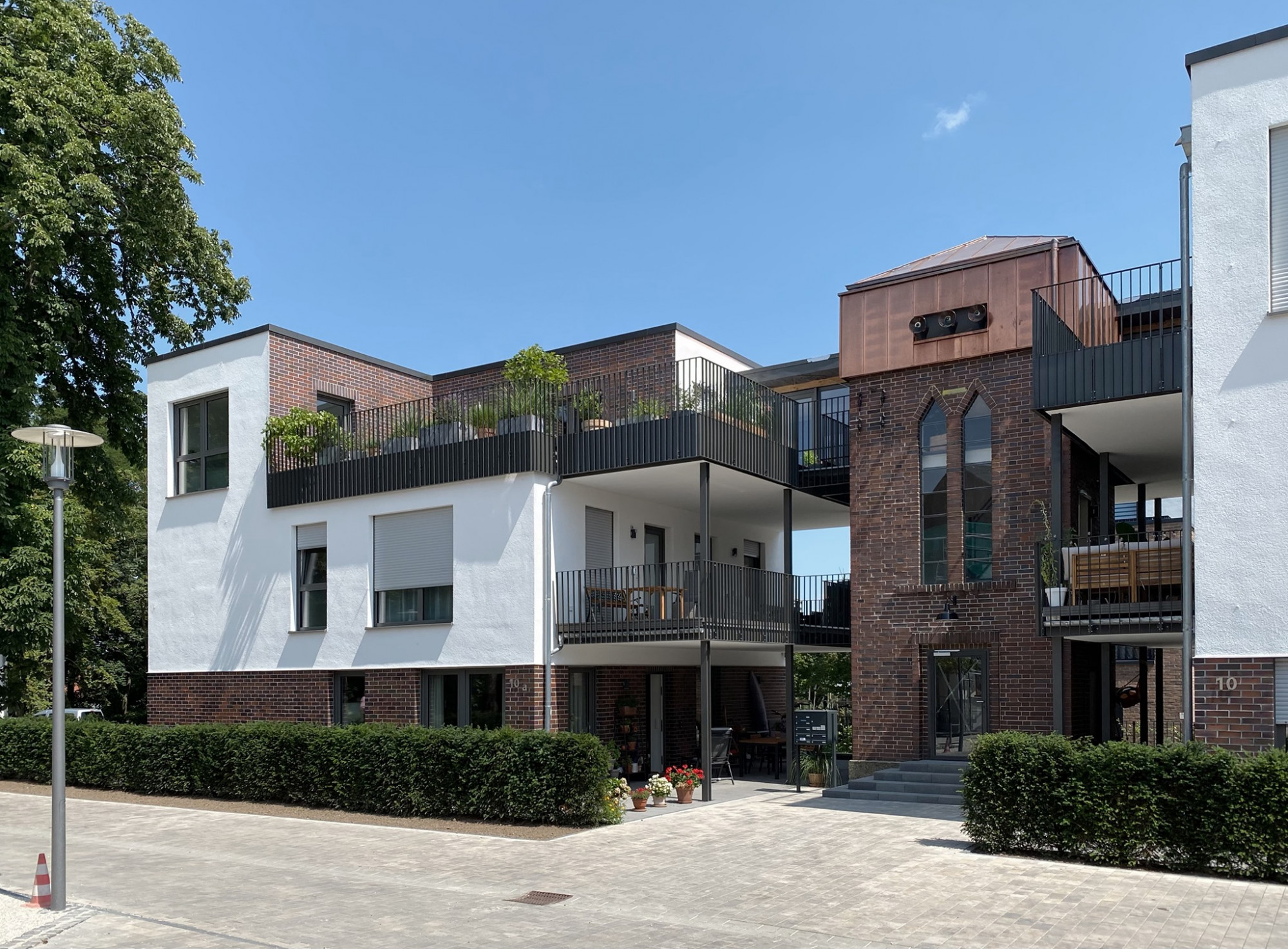 Außerdem planten wir zwei der Mehrfamilienhäuser im direkten Anschluss an den historischen Bestand. Besonderheit hierbei war die Integration des alten Lichthäuschens als Erschließungstreppenhaus. Zu unserem Leistungsbild gehörten u. a. die Bestandsanalyse der hallenartigen Industriearchitektur, die Konzeptentwicklung für Sanierung und Innenausbau unter Denkmalgesichtspunkten, die Koordination mit Denkmalbehörden und Fachplanern, die Ausführungsplanung, Bauleitung und Qualitätsüberwachung bei der Sanierung der historischen Fassaden, Fenster sowie Tragwerksmaßnahmen.