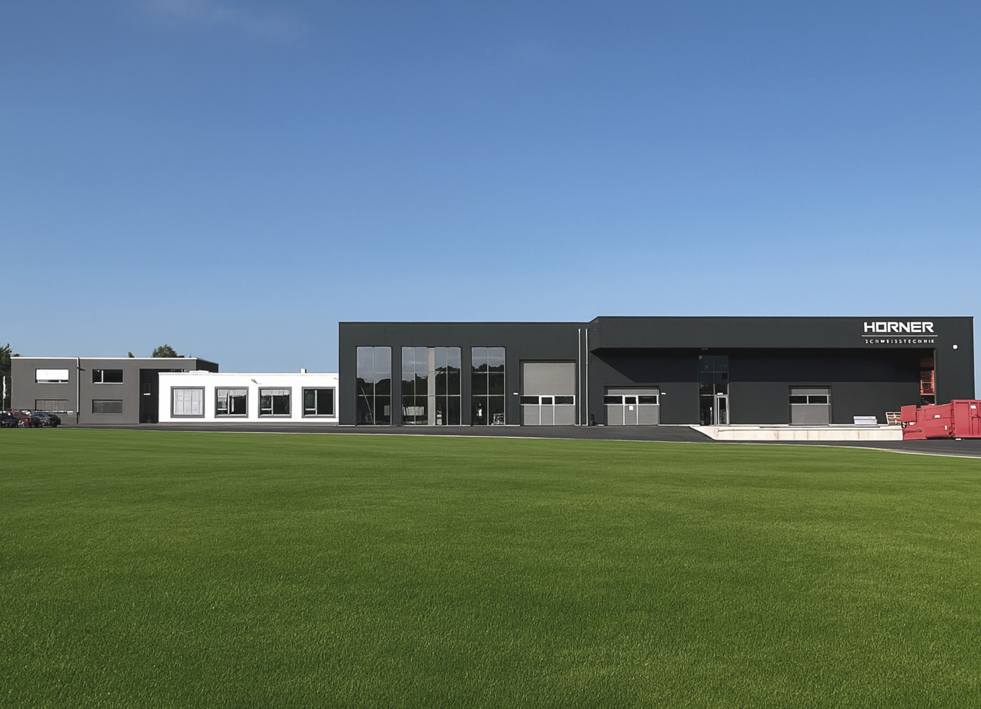 Neubau eines Industrie- und Technologiezentrums in Mücke fertiggestellt. Die Neubauten erweitern den bestehenden Produktionsstandort der Hürner Schweißtechnik zu einem Technologiecampus.