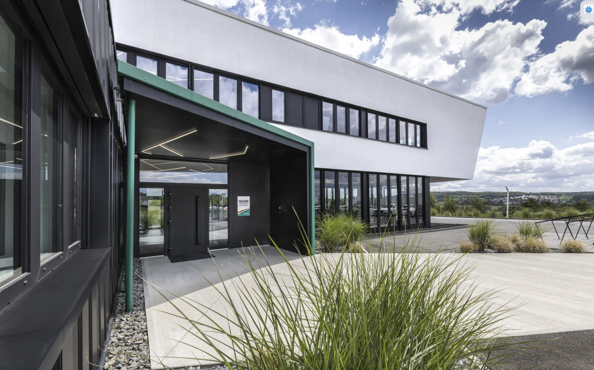 Der Neubau umfasst drei funktionale Bausteine – Bürogebäude, Produktions‑ / Entwicklungsblock sowie ein Lager– und Logistikbereich. Mit über dreifacher Fläche gegenüber dem bisherigen Standort bietet das Gebäude ausreichend Frei‑ und Bewegungsspielraum für rund 50 Arbeitsplätze initial sowie die geplante Expansion.