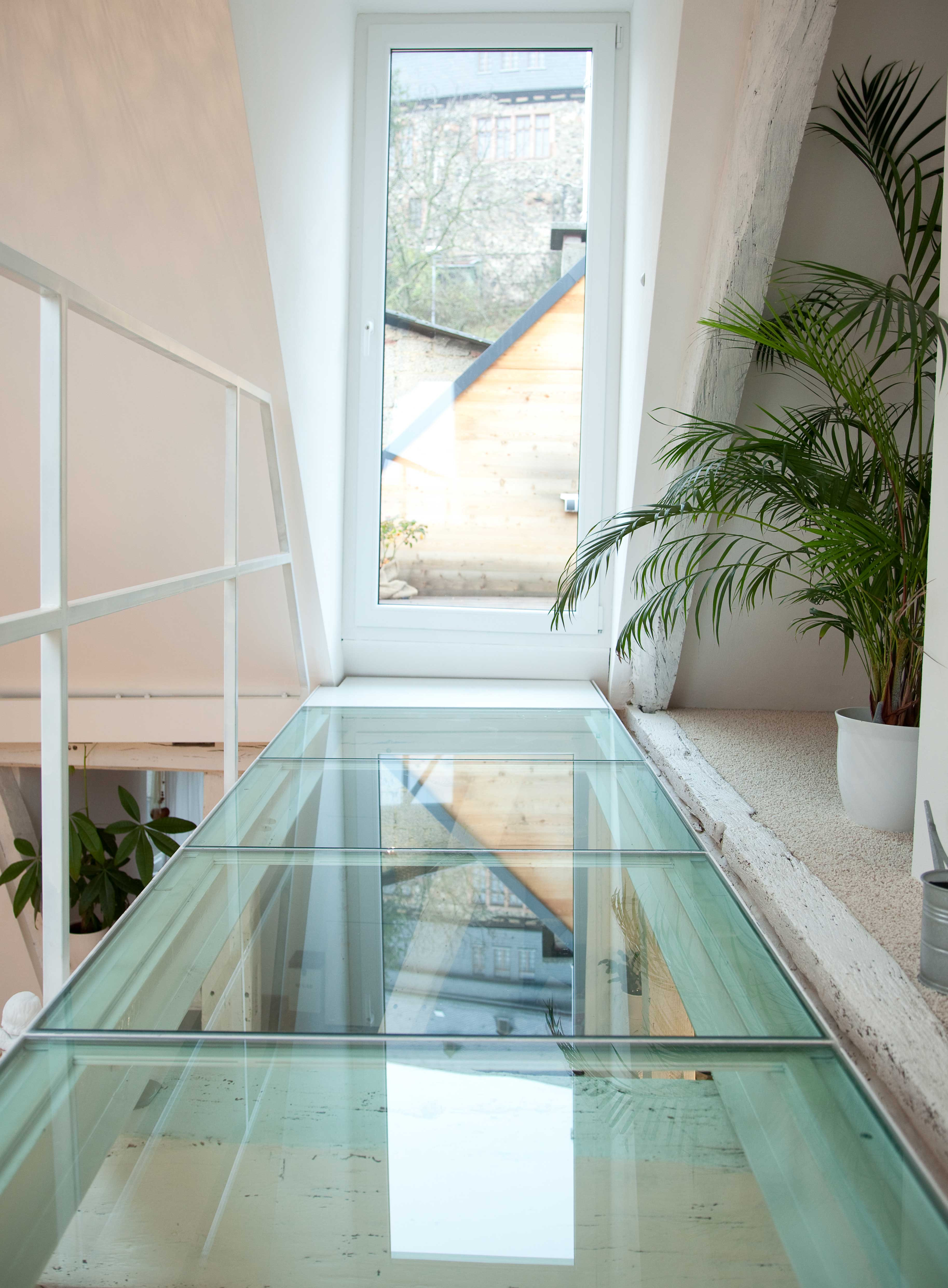 Der Umbau des kleinen Hauses beinhaltet die Schaffung von großzügigem Wohnraum auf einer kleinen Fläche im historischem Umfeld. Das Gebäude soll zeigen, was moderne Architektur in ländlichen Gegenden leisten kann und somit ein gutes Beispiel für modernes Wohnen auf dem Land darstellen. Die alte vorhandene Bausubstanz wurde sorgsam rückgebaut, Erhaltenswertes für die Bewohner konserviert. Der ausgebaute Lehm der Gefache fungiert als Putz, alte Eichebalken wurden z.B. als Fensterbänke oder Möbel wieder verwendet. Die Entfernung des vorhandenen PVC-Belags auf den alten Treppenanlagen gehörte genauso wie die Aufarbeitung der Holz- und Terrazzostufen zum Umfang der Umbaumaßnahme. Des Weiteren wurde ein besonderes Augenmerk auf die Gestaltung der Gebäudefassade gelegt. Die vorhandene Rauputzfassade wurde gedämmt und durch eine hinterlüftete flächenbündige unbehandelte Lärchenholzschalung ersetzt und stellt somit einen nachhaltigen Bezug zur Fachwerkbauweise der Umgebung her. Die Verwendung und Gestaltung der ursprünglichen Materialien wurde auf moderne Weise neu interpretiert. Um den zeitgemäßen Umgang mit der alten Gebäudesubstanz darzustellen wurden alle Fassadendetails deutlich reduziert und in Einklang mit der ländlichen Umgebung gebracht. Seine einfache Erscheinung wurde durch den nicht sichtbaren Übergang von Fassade und Dach fortgesetzt. Da das Grundstück komplett durch das Gebäude überbaut ist und somit keine privaten Außenbereiche vorhanden sind, wurde eine Dachterrasse mit Burgblick auf der Gebäuderückseite integriert.