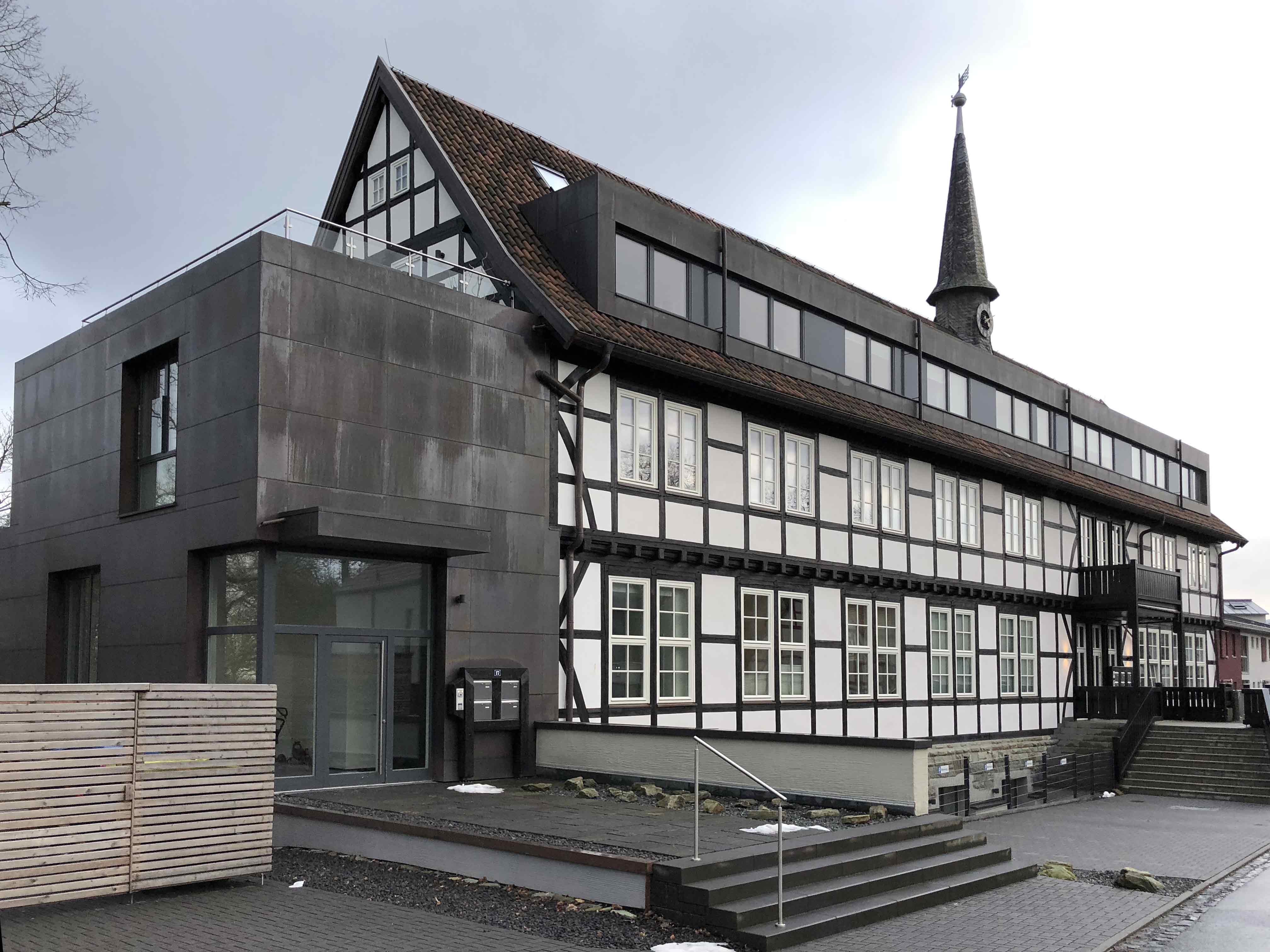 Ein neuer Riegel auf der Süd- und Ostseite umschließt das heutige Gebäude halbseitig und ermöglicht großzügige Terrassen und lichtdurchflutete Loggien. Die durchglaste und vorspringenden Bauweise vermittelt Transparenz und Leichtigkeit und akzentuiert die alte Fachwerkkonstruktion. Innenliegende Fahrstühle ermöglichen den bequemen Zugang zu Wohnung und Abstellraum. Gaubenbänder auf beiden Seiten des Dachgeschosses vervielfachen die Aussichten. Die Wohnungen orientieren sich zum einen entlang des bestehenden, äußerst repräsentativen Hauseingangsbereiches und zum anderen am deutlich vergrößerten und modern gestalteten östlichem Treppenhaus. Die Wohnung im Gartengeschoss der Westseite hat als einzige einen vollständig separaten Eingang. Die Anbauten sind in enger Abstimmung mit dem Denkmalschutz in Struktur und Materialverwendung modern gehalten und komplementieren einzigartig die Altsubstanz. Alle zehn Wohnungen sind hinsichtlich ihrer Lage, ihrer Aufteilung und ihres Charakters Unikate. Eine solche Vielfalt in einem Gebäude ist sonst kaum anzutreffen. Wohnungen mit Maisonettecharakter, Splittlevel, begehbares Glockentürmchen, Gewölbe, eigener Gartenanteil, offene Fachwerkkonstruktionen.
