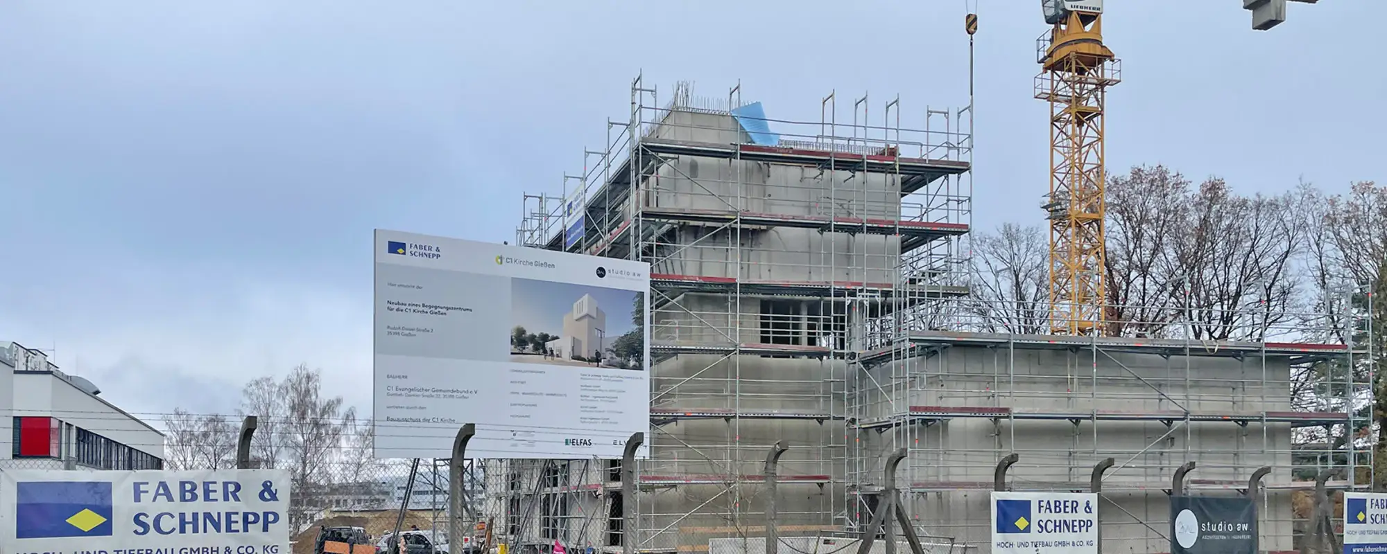 Im neuen Stadtteil "Am Alten Flughafen" wurde das Richtfest für die C1 Kirche Gießen gefeiert. Mit der Fertigstellung des Rohbaus ist ein bedeutender Meilenstein erreicht: Die vier Ebenen des neuen Gemeinde- und Begegnungszentrums sind nun räumlich erlebbar, der große Veranstaltungssaal sowie die zukünftigen Arbeits- und Gruppenräume nehmen klare Konturen an.